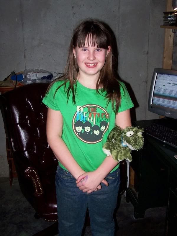 A definite frog phase is entrenched in our home. She's doing a frog report for her science project. The frog she's holding came with a web code. She can do all kinds of things with the website. She has her frog it's own virtual room and clothes, toys, food, you name it. It's actually really cute! It's called Webkinz. Orange is still her favorite color though. |
