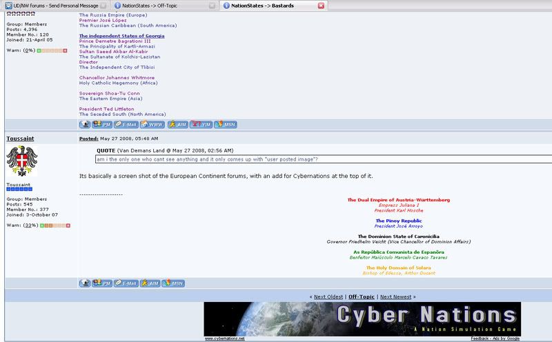 Its basically a screen shot of the European Continent forums, with an add for Cybernations at the top of it. |